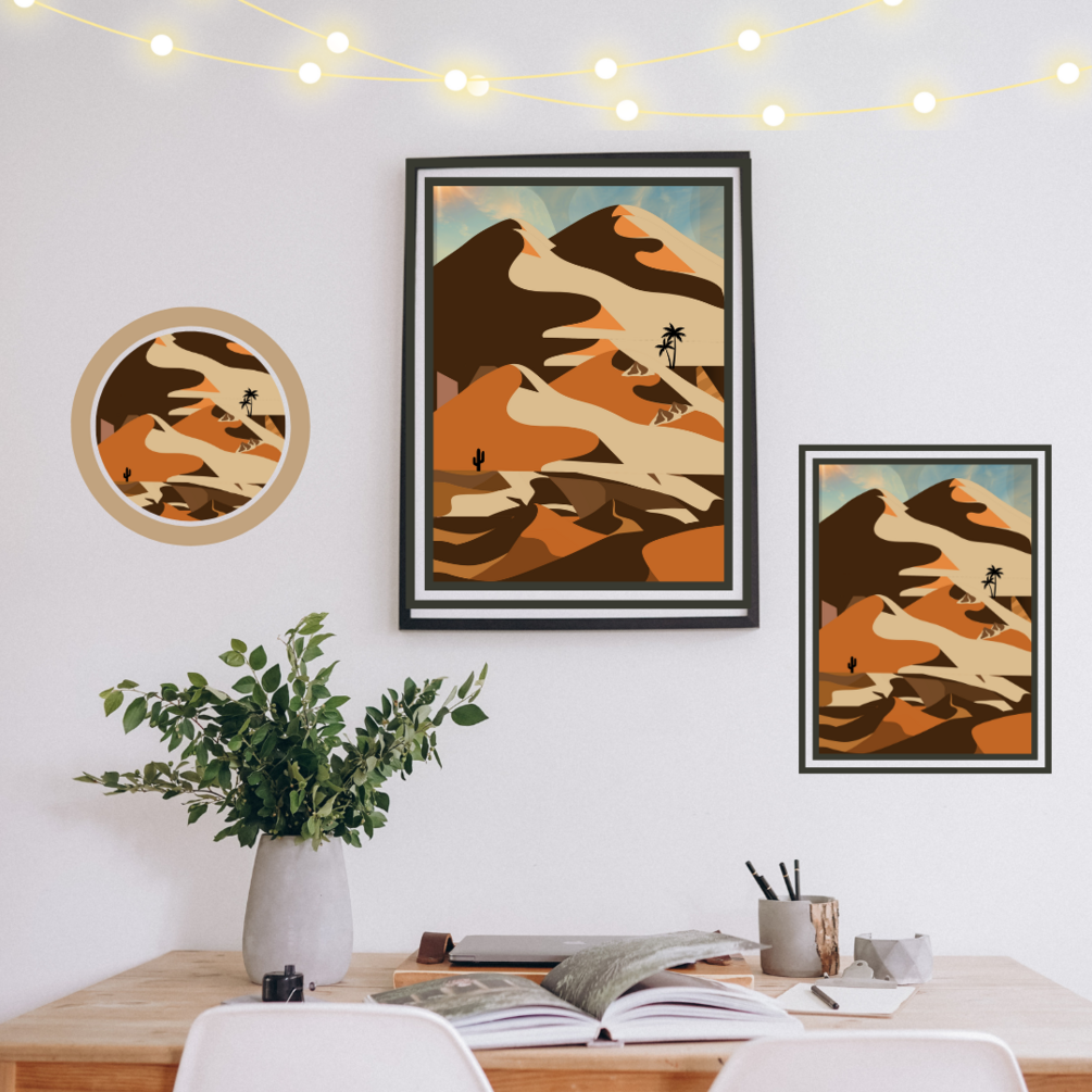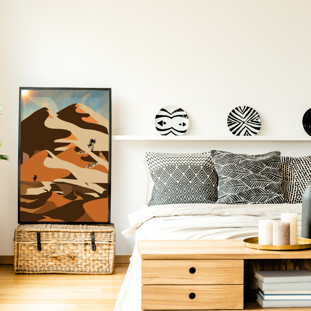 Majestic Desert Wall Art Print, Large Sand Dune Home Decor, Exotic Landscape Poster.